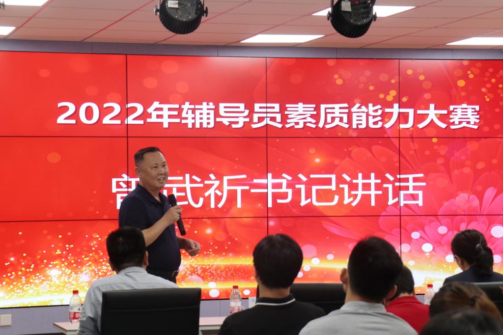 大賽最后,曾武祈向獲獎(jiǎng)選手們表示衷心的祝賀和肯定,對(duì)與會(huì)評(píng)委精彩、精辟、精準(zhǔn)的點(diǎn)評(píng)表示感謝。他強(qiáng)調(diào),輔導(dǎo)員隊(duì)伍是思政工作的排頭兵和主力軍,使命光榮同時(shí)責(zé)任重大,輔導(dǎo)員素質(zhì)能力大賽是輔導(dǎo)員工作風(fēng)采的集中展示和對(duì)這支隊(duì)伍全方位的考核。他希望賽事越辦越好,選手們能走出校園,走上省賽、國(guó)賽的更大舞臺(tái)。他向?qū)W生管理和輔導(dǎo)員隊(duì)伍提出三點(diǎn)殷切期望:一要提升政治素養(yǎng),加強(qiáng)理論學(xué)習(xí),為黨育人為國(guó)育才,做學(xué)生成長(zhǎng)成才的指導(dǎo)者和引路人;二要練就過(guò)硬本領(lǐng),做到能承天接地,理論思想能入腦入心,踐行于工作實(shí)際,搭建好與學(xué)生間的橋梁,營(yíng)造風(fēng)清氣正的良好氛圍;三要通過(guò)舉辦比賽推進(jìn)工作,推動(dòng)隊(duì)伍建設(shè),總結(jié)經(jīng)驗(yàn),檢驗(yàn)工作。