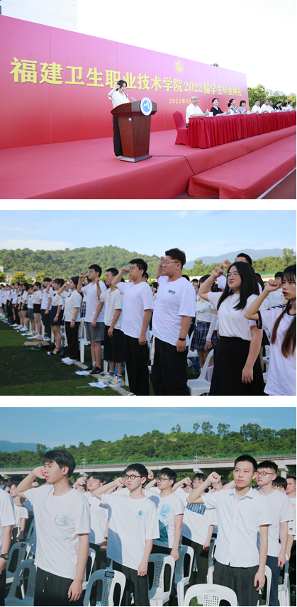 隨后,全體畢業(yè)生在輔導(dǎo)員代表陳清清老師的帶領(lǐng)下進(jìn)行了畢業(yè)誓詞的宣誓:“健康所系,性命相托……”鏗鏘有力的畢業(yè)誓言激蕩在會場上空。