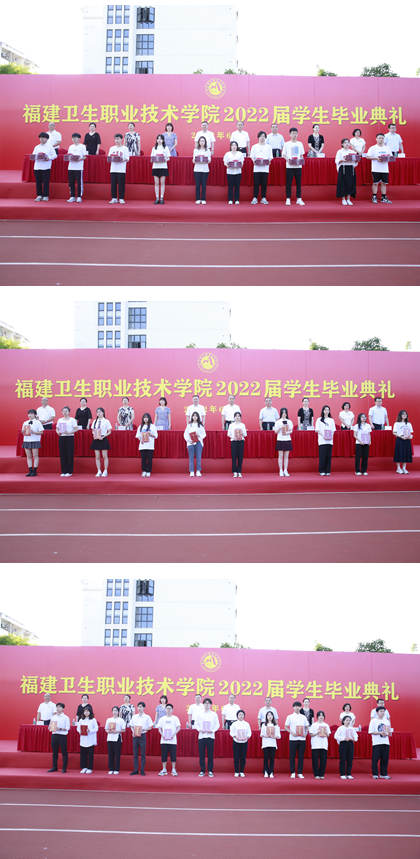 與會領(lǐng)導(dǎo)為畢業(yè)生代表頒發(fā)畢業(yè)證書和畢業(yè)紀(jì)念禮物,為優(yōu)秀實習(xí)生、優(yōu)秀畢業(yè)生頒發(fā)榮譽(yù)證書。