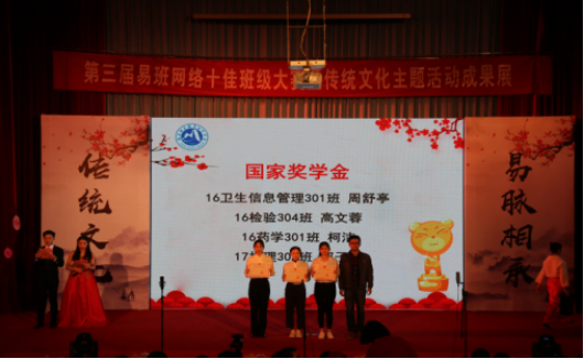 相約明湖之畔,大展中華風(fēng)采。12月25日晚,“致敬傳統(tǒng),易路同行”福建衛(wèi)生職業(yè)技術(shù)學(xué)院第三屆易班網(wǎng)絡(luò)十佳班級(jí)大賽暨學(xué)生工作表彰大會(huì)在學(xué)術(shù)廳成功舉行。本次大賽由學(xué)生工作處主辦,易班學(xué)生工作站承辦,學(xué)院黃銘珊副院長(zhǎng)、福建藝術(shù)職業(yè)學(xué)院就業(yè)辦夏云清主任等出席了活動(dòng),院學(xué)生工作處、團(tuán)委、護(hù)理系、藥學(xué)系、醫(yī)學(xué)技術(shù)系等部門負(fù)責(zé)人,學(xué)院和各系易班分站指導(dǎo)老師,以及400余名同學(xué)共同參加了活動(dòng)。