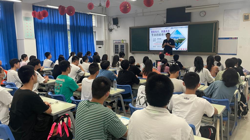 鐘偉雄向新生們發(fā)放了?;詹⒔榻B了智能醫(yī)療裝備技術(shù)專業(yè)的發(fā)展歷程,全面分析了專業(yè)的辦學(xué)定位、人才培養(yǎng)方案、校內(nèi)外實訓(xùn)基地建設(shè)、師資力量、課程建設(shè)、1+X證書培訓(xùn)和考證、職業(yè)技能競賽和創(chuàng)新創(chuàng)業(yè)大賽獲獎、學(xué)生畢業(yè)就業(yè)去向和專升本考試錄取等情況。同學(xué)們紛紛提出自己的想法、疑惑和對專業(yè)未來發(fā)展的期待,鐘偉雄一一做了耐心解答并對同學(xué)們提出三點期望:一是做好學(xué)習(xí)規(guī)劃并努力實現(xiàn)規(guī)劃。二是在學(xué)習(xí)期間打好基礎(chǔ),認(rèn)真學(xué)好理論,提高實操動手能力。三是珍惜來之不易的同學(xué)緣分,與來自全省各地的同學(xué)們友好相處,在校期間要尊敬師長、團(tuán)結(jié)同學(xué)。