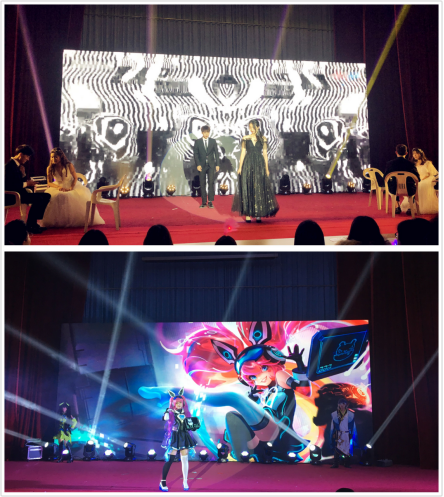 晚會現(xiàn)場表彰了2018-2019學年第一學期優(yōu)秀社長及優(yōu)秀社團。師生們通過觀看視頻,一同回顧了學生社團聯(lián)合會十年來的成長壯大,分享了師生對周年慶典的祝福與期望。38個社團各顯身手,帶給現(xiàn)場師生一場精彩紛呈的視聽盛宴?!痘臃b秀》將“服章之美謂之華”體現(xiàn)的淋漓盡致;跆拳道協(xié)會帶來的表演《跆風》展示了變化多樣的招式與極具難度的精湛腿法;舞韻舞蹈協(xié)會帶來的《攬風扶柳》展現(xiàn)出似水柔情的江南女子之美;新思想讀書社和集雅軒書畫協(xié)會帶來的原創(chuàng)詩朗誦《社聯(lián)之歌》回顧了社聯(lián)十歲的一點一滴,一卷墨寶,一副丹青,繪出了傳統(tǒng)墨寶的翩翩風采;演講與口才俱樂部帶來的關(guān)于《大城床小城房》的精彩辯論,唇槍舌戰(zhàn)的精彩論點與風趣幽默的表達形式獲得陣陣掌聲;讀者協(xié)會和武術(shù)協(xié)會為大家?guī)淼摹毒覉髧氛宫F(xiàn)了中華兒女多奇志的豪邁……