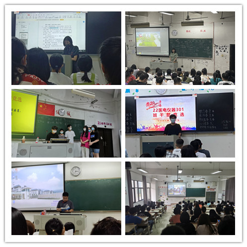 9月7日至8日晚,醫(yī)學(xué)技術(shù)系22級新生先后開展兩次主題班會。班會在校歌《仁心如花》的優(yōu)美旋律中拉開序幕,各班輔導(dǎo)員通過ppt、音視頻媒介等方式向同學(xué)們詳細(xì)介紹了學(xué)??傮w情況,帶領(lǐng)同學(xué)們一起學(xué)習(xí)《學(xué)院章程》和《學(xué)生手冊》,了解遵紀(jì)守規(guī)、遵紀(jì)守法的重要性,以身邊的案例強(qiáng)調(diào)校園疫情防控要求,組織同學(xué)破冰和班干部競選,幫助新生從小班會里思未來生活、小夢想里繪青春藍(lán)圖、小體驗里感成長資源,增強(qiáng)學(xué)生的價值認(rèn)同、專業(yè)認(rèn)同、文化認(rèn)同和身份認(rèn)同,更好適應(yīng)大學(xué)生活。