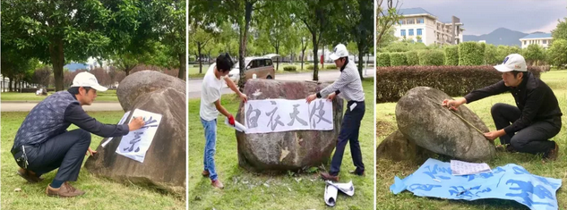項(xiàng)目負(fù)責(zé)人、福建省書(shū)法家協(xié)會(huì)會(huì)員洪常青老師花費(fèi)3個(gè)多月時(shí)間,精心擬定石刻內(nèi)容,精心設(shè)計(jì)指導(dǎo)施工,使校園綠地原有景觀石得到了“升級(jí)”。