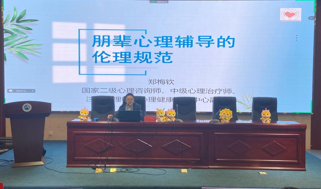 開班儀式結束后,學校心理健康教育中心和教研室鄭梅欽、余彩云、黃秋蓮、田偉翠、夏雪梅、鄭曉婧等老師開展6場主題培訓,包括班級心理委員工作內容、人際信任和基本心理咨詢技術、大學生心理問題的初步鑒別、朋輩心理輔導的實務操作、大學生心理危機干預中心理委員的行為與作用、朋輩心理輔導的倫理規(guī)范等。