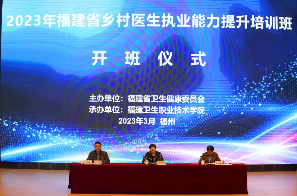 3月27日,2023年福建省鄉(xiāng)村醫(yī)生執(zhí)業(yè)能力提升培訓(xùn)班開班儀式在我校學(xué)術(shù)廳舉行。福建省衛(wèi)生健康委員會(以下簡稱省衛(wèi)健委)基層處處長付冬香、學(xué)校副校長朱扶蓉出席儀式并講話。護(hù)理學(xué)院、醫(yī)學(xué)院、健康管理系等院系負(fù)責(zé)人及340名鄉(xiāng)村醫(yī)生參加開班儀式。開班儀式由繼續(xù)教育學(xué)院副院長何烜主持。