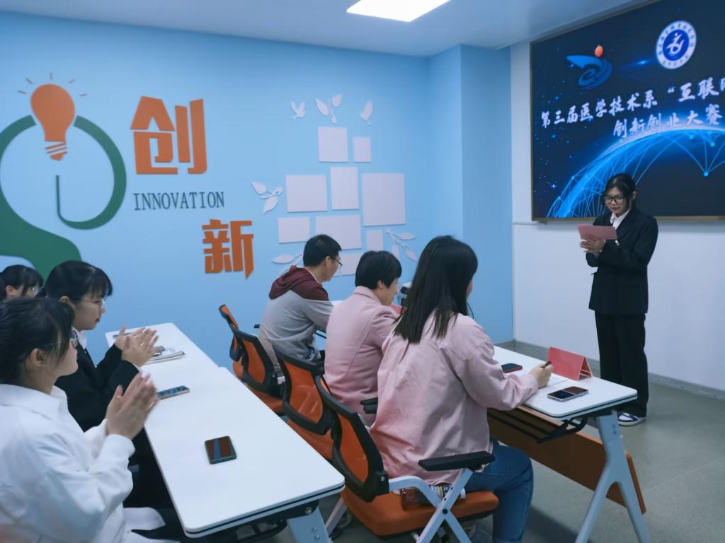 比賽采用線上線下相結(jié)合的方式進(jìn)行,自比賽啟動(dòng)以來,醫(yī)學(xué)技術(shù)系雙帶頭人黨支部采取往屆經(jīng)驗(yàn)介紹、賽事專家輔導(dǎo)等有效措施,充分進(jìn)行賽前動(dòng)員,激發(fā)同學(xué)們創(chuàng)新創(chuàng)業(yè)熱情,共計(jì)收到100多件作品。經(jīng)過初賽網(wǎng)評(píng)篩選,共有六個(gè)團(tuán)隊(duì)項(xiàng)目脫穎而出進(jìn)入決賽。決賽分為項(xiàng)目展示和現(xiàn)場(chǎng)答辯兩個(gè)環(huán)節(jié),參賽團(tuán)隊(duì)代表通過PPT展示創(chuàng)業(yè)計(jì)劃目的與想法、創(chuàng)業(yè)實(shí)施過程中可能遇到的問題與解決方案、團(tuán)隊(duì)分工與介紹、市場(chǎng)預(yù)測(cè)等內(nèi)容,詳細(xì)闡述團(tuán)隊(duì)的創(chuàng)新創(chuàng)業(yè)項(xiàng)目。