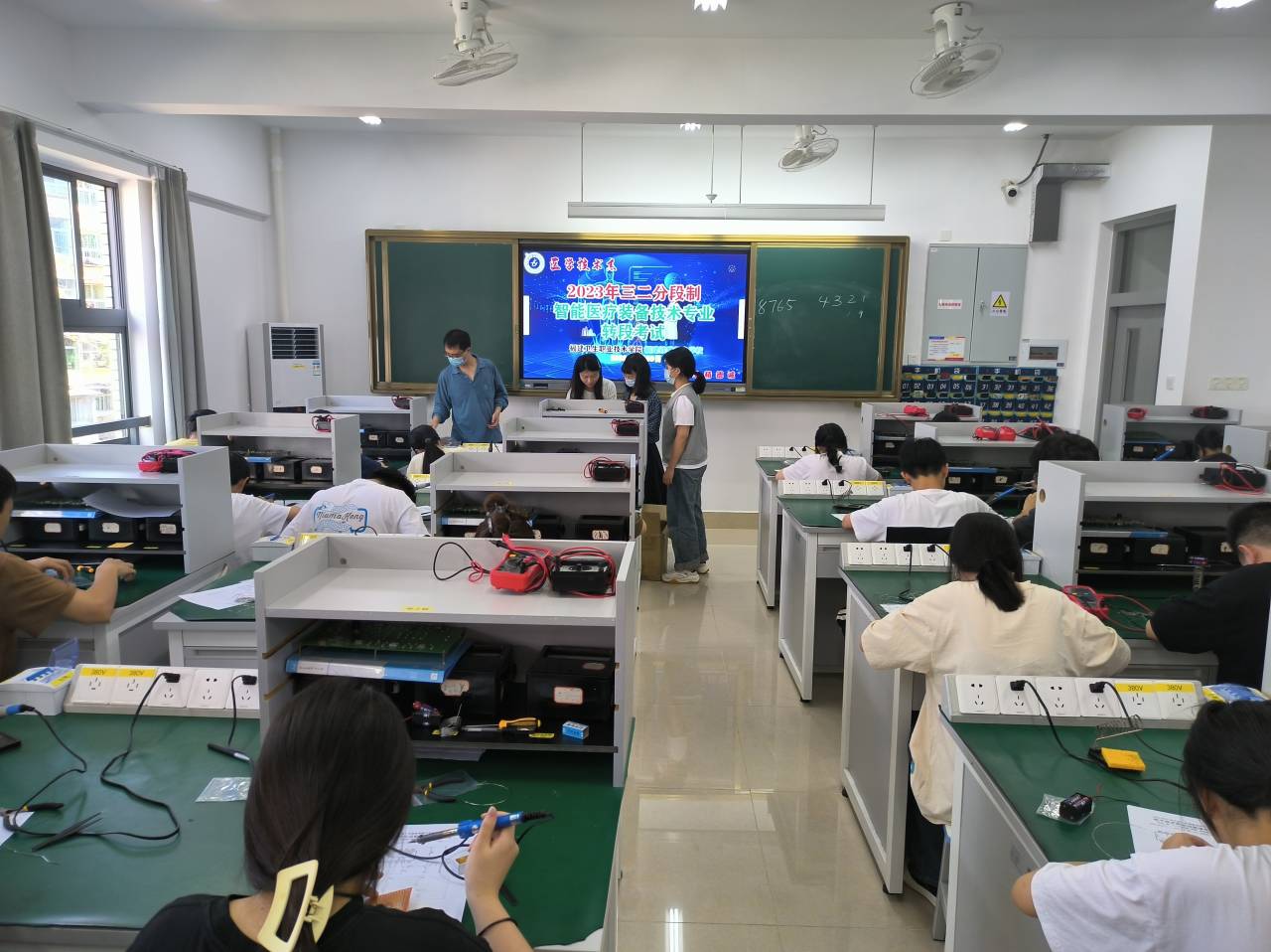 2023年5月30日,醫(yī)學(xué)技術(shù)系聯(lián)合福建鐵路機(jī)電學(xué)校進(jìn)行2020級(jí)智能醫(yī)療裝備技術(shù)專業(yè)的三二分段中高銜接轉(zhuǎn)段考核工作。醫(yī)學(xué)技術(shù)系副主任鐘偉雄帶領(lǐng)智能醫(yī)療裝備技術(shù)專業(yè)教師到場(chǎng)指導(dǎo),考核工作小組察看了全部考場(chǎng),完成命題、巡考、閱卷與評(píng)分。