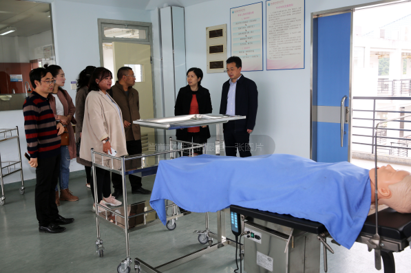 調研座談會后,考察組一行在黃銘珊副院長及有關部門的陪同下實地參觀考察了學院門診部、藥學系藥物制劑實訓車間、標本館和護理系實訓中心。