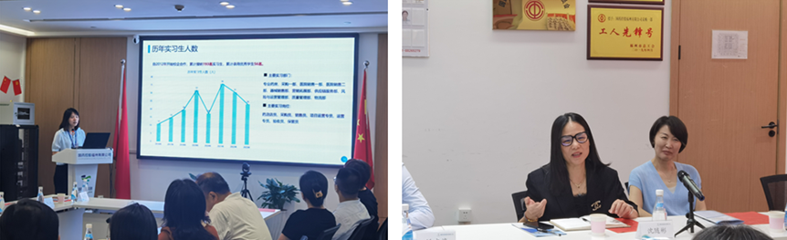 在北京同仁堂福建藥業(yè)連鎖有限公司,零售事業(yè)部華南區(qū)域總監(jiān)鐘盛芳詳細(xì)介紹了企業(yè)的總體概況、發(fā)展歷程、產(chǎn)業(yè)布局以及產(chǎn)品創(chuàng)新研發(fā)方面的情況。人力資源經(jīng)理吳丹丹介紹了實習(xí)生的培養(yǎng)、發(fā)展模式以及與我校的校企合作情況。