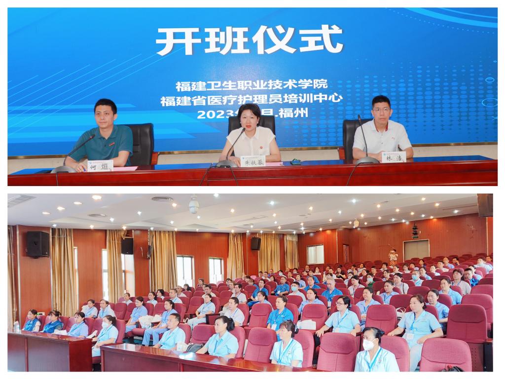 2023年6月27日,福建省醫(yī)療護理員(省屬醫(yī)療機構(gòu))培訓(xùn)班在我校實訓(xùn)樓報告廳順利開班。副校長朱扶蓉出席開班儀式并發(fā)表講話,護理學(xué)院副院長林浩以及91名各省屬醫(yī)療機構(gòu)醫(yī)療護理員參加開班儀式。開班儀式由繼續(xù)教育學(xué)院副院長何烜主持。