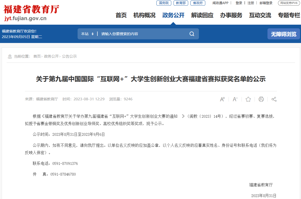 第九屆福建省“互聯(lián)網(wǎng)+”大學(xué)生創(chuàng)新創(chuàng)業(yè)大賽由福建省教育廳、福建省委統(tǒng)戰(zhàn)部、福建省委網(wǎng)信辦、福建省發(fā)改委、福建省工信廳、福建省人社廳、福建省農(nóng)業(yè)農(nóng)村廳、福建省市場(chǎng)監(jiān)管局(福建省知識(shí)產(chǎn)權(quán)局)、共青團(tuán)福建省委、福建省科協(xié)、福建省中華職教社等部門(mén)共同主辦,福州大學(xué)、黎明職業(yè)大學(xué)分別承辦,福建教育電視臺(tái)、福建省創(chuàng)新創(chuàng)業(yè)創(chuàng)造教育指導(dǎo)委員會(huì)等單位參與協(xié)辦。據(jù)悉,本屆大賽共吸引全省247所學(xué)校的85萬(wàn)名師生,近22.3萬(wàn)個(gè)項(xiàng)目報(bào)名參賽,參賽人數(shù)、項(xiàng)目數(shù)均創(chuàng)歷史新高。