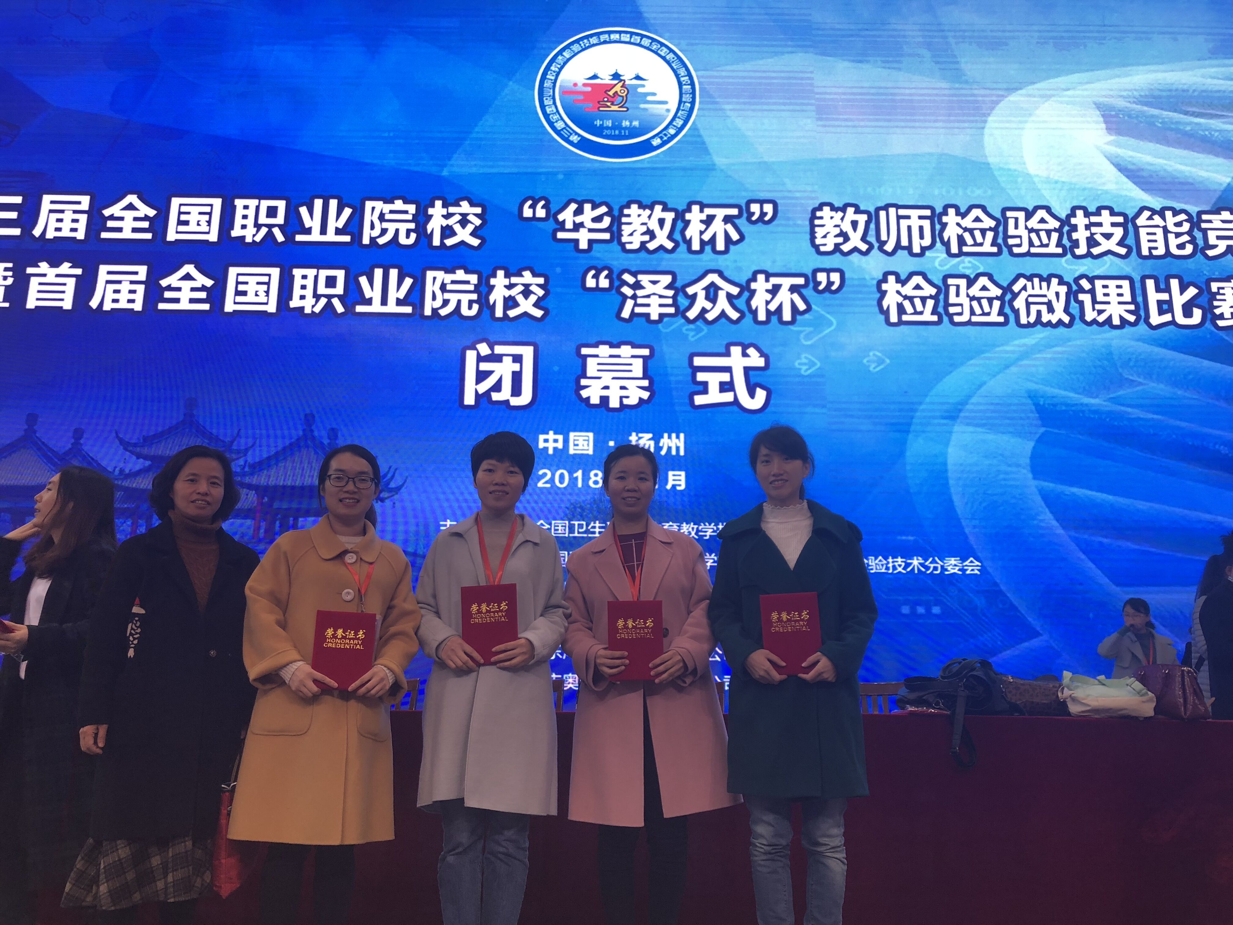 我院派出醫(yī)學(xué)技術(shù)系5位教師參加教師檢驗(yàn)技能競(jìng)賽、3位教師參加微課競(jìng)賽。通過前期的刻苦訓(xùn)練和認(rèn)真準(zhǔn)備,參賽教師們?cè)谶@兩類比賽中均交出了滿意的答卷。在第三屆全國職業(yè)院?!叭A教杯”教師檢驗(yàn)技能競(jìng)賽中,林雪金老師榮獲“形態(tài)學(xué)檢驗(yàn)”項(xiàng)目的一等獎(jiǎng),余明明老師榮獲“微生物檢驗(yàn)”項(xiàng)目的一等獎(jiǎng),盧虹老師榮獲“血常規(guī)檢驗(yàn)”項(xiàng)目的二等獎(jiǎng),吳美芬老師榮獲“免疫學(xué)檢驗(yàn)”項(xiàng)目的三等獎(jiǎng)。在首屆全國職業(yè)院?!皾杀姳睓z驗(yàn)專業(yè)微課競(jìng)賽中,魏碧娜老師、彭臻菲老師均榮獲二等獎(jiǎng),李晶老師榮獲三等獎(jiǎng)。