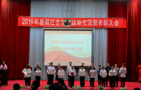 與會師生共同觀看了2018年暑期社會實踐成果精彩視頻后,院團委黃曦書記宣讀表彰決定。會議表彰了榮獲“優(yōu)秀社會實踐團隊”“優(yōu)秀指導教師”“社會實踐先進個人”“社會實踐十佳實踐成果”“社會實踐優(yōu)秀實踐成果”等獎項的8個先進集體和150名先進個人。院系暑期社會實踐隊代表依次上臺做了經(jīng)驗交流。