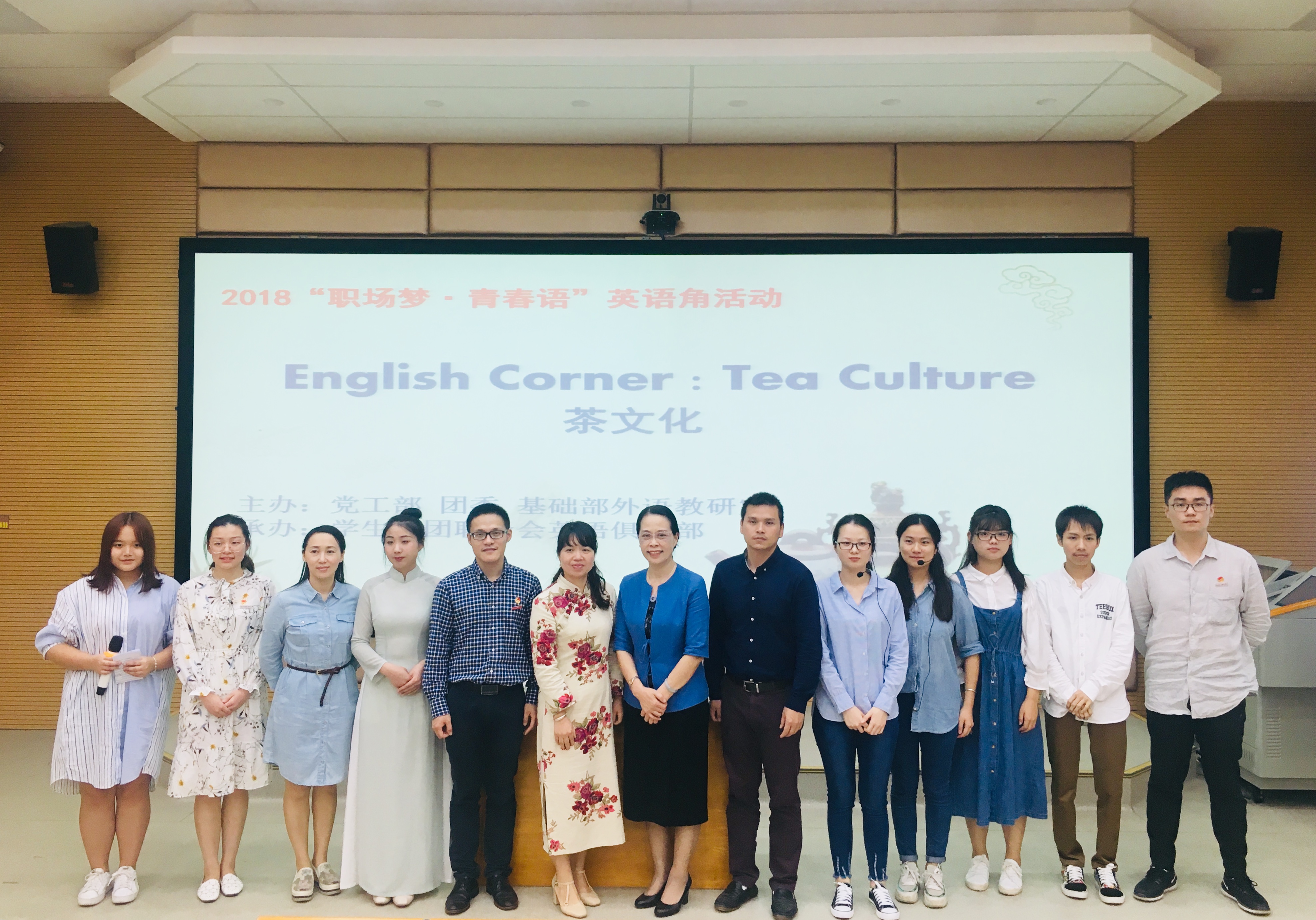 為弘揚(yáng)中華優(yōu)秀傳統(tǒng)文化,探索課程思政育人途徑,提升我院學(xué)生英語(yǔ)運(yùn)用能力,11月8日下午,我院在實(shí)訓(xùn)樓305舉辦“職場(chǎng)夢(mèng)?青春語(yǔ)”之“茶文化”英語(yǔ)角活動(dòng)。本次活動(dòng)由黨工部、院團(tuán)委 基礎(chǔ)部外語(yǔ)教研室共同主辦,學(xué)院鄭翠紅副院長(zhǎng)、團(tuán)委黃曦書記、基礎(chǔ)部辦公室主任王鈍銳老師、外語(yǔ)教研室教師、英語(yǔ)俱樂部成員共30余人參加本次活動(dòng)。