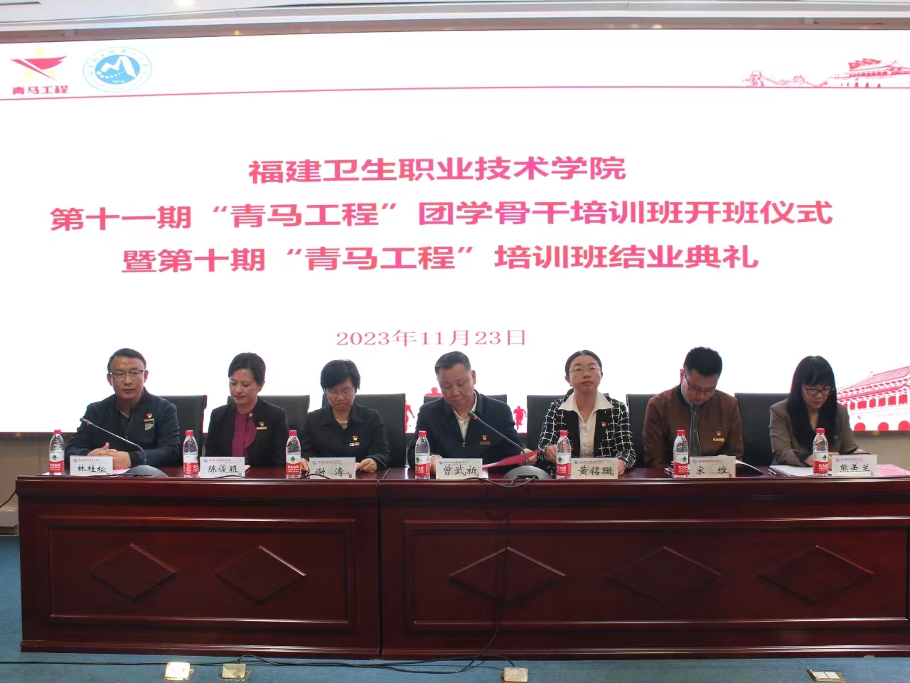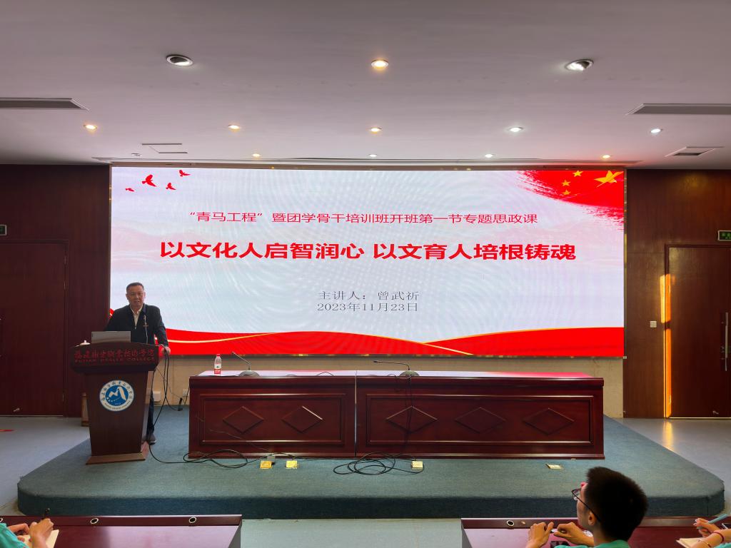 2023年11月23日下午,我校第十一期“青馬工程”團(tuán)學(xué)骨干培訓(xùn)班開(kāi)班儀式暨第十期“青馬工程”團(tuán)學(xué)骨干培訓(xùn)班結(jié)業(yè)典禮在實(shí)訓(xùn)樓四樓報(bào)告廳順利舉行。校黨委書(shū)記曾武祈、副校長(zhǎng)黃銘珊出席儀式,組織統(tǒng)戰(zhàn)部、宣傳部、學(xué)生工作部、馬克思主義學(xué)院、團(tuán)委、各院系黨團(tuán)組織負(fù)責(zé)人以及115名第十一期“青馬工程”學(xué)員參加儀式。儀式結(jié)束,曾武祈為青馬學(xué)員講授開(kāi)班第一節(jié)專(zhuān)題思政課。