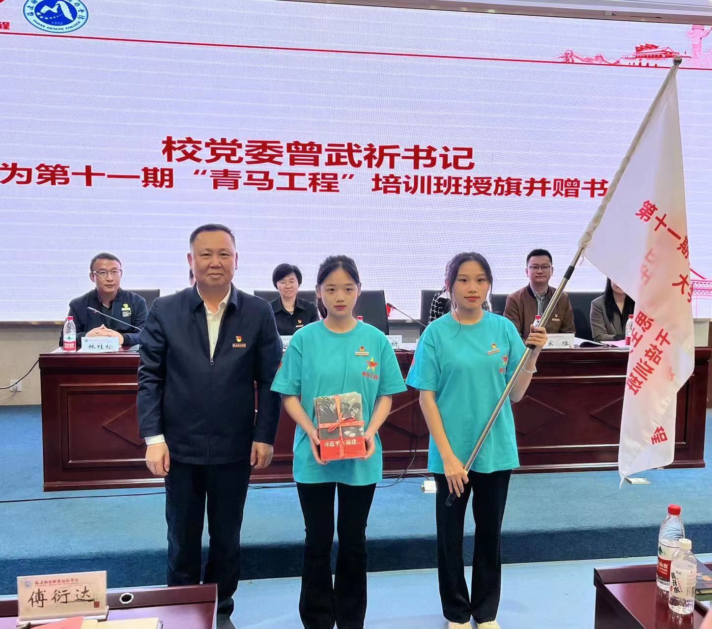 曾武祈為第十一期“青馬工程”培訓(xùn)班授旗并贈(zèng)書(shū),勉勵(lì)青馬學(xué)員把政治理論學(xué)習(xí)作為“必修之課”,通過(guò)“青馬工程”的課程學(xué)習(xí),用最新的理論成果武裝自己,將所學(xué)的知識(shí)融入日常的學(xué)習(xí)、工作和生活中,做合格的馬克思主義接班人。