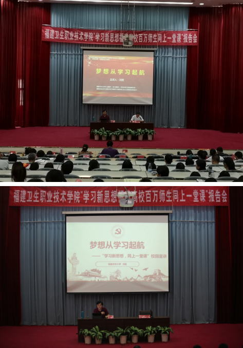 9月6日下午,福建省委教育工委學(xué)習(xí)貫徹習(xí)近平新時(shí)代中國特色社會(huì)主義思想宣講活動(dòng)暨“衛(wèi)院之原”馬克思主義論壇在我院學(xué)術(shù)報(bào)告廳舉行。福建省委宣講團(tuán)成員、建農(nóng)林大學(xué)學(xué)工部部長、研工部部長劉勝副研究員為師生作了題為《夢想從學(xué)習(xí)起航》的專題講座。學(xué)院黨委副書記林建團(tuán)、副院長黃銘珊,學(xué)工干部、各系部黨總支副書記、思政理論課專職教師以及習(xí)近平新時(shí)代中國特色社會(huì)主義思想讀書社、學(xué)院第六期青馬工程暨學(xué)生干部骨干培訓(xùn)班學(xué)員、各系部學(xué)生代表等共420多人聽取了講座,講座由院黨委副書記林建團(tuán)主持。