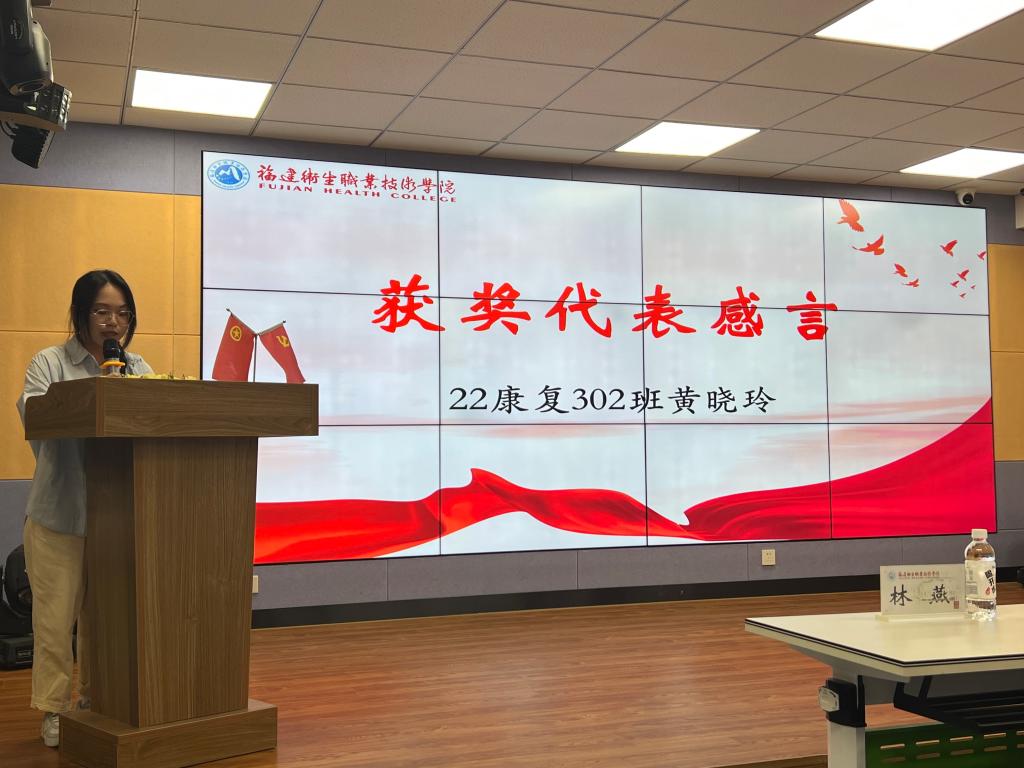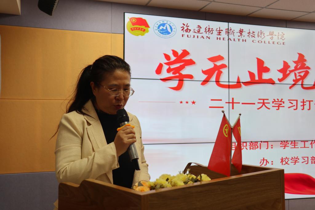 頒獎(jiǎng)儀式上,學(xué)生工作部副部長(zhǎng)張麗萍宣讀本次活動(dòng)獲獎(jiǎng)學(xué)生名單。獲獎(jiǎng)學(xué)生代表22康復(fù)302班黃曉玲分享學(xué)習(xí)打卡活動(dòng)心得,她表示,21天的學(xué)習(xí)打卡活動(dòng)讓她收獲了堅(jiān)持做一件事情的成就感,收獲了知識(shí),也收獲了充實(shí)的每一天。