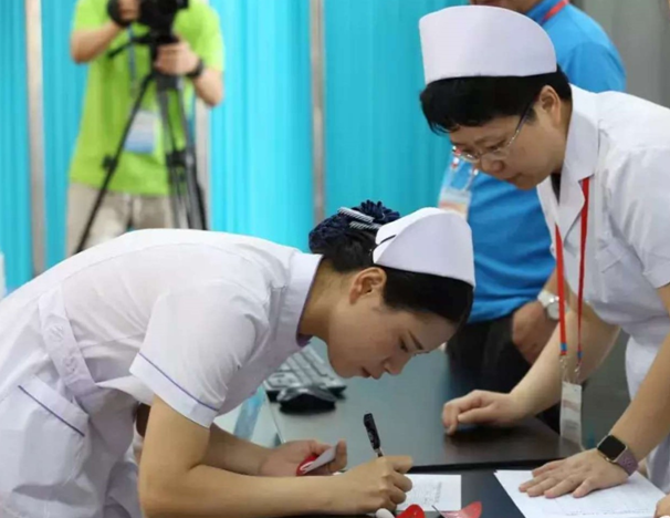 本次大賽由各省、自治區(qū)、直轄市經預賽選拔的優(yōu)秀選手組成代表隊,每名選手首先在健康評估室書面完成臨床護理案例分析,然后進入操作室根據患者病情及醫(yī)囑要求,先后完成右踝扭傷固定包扎、徒手心肺復蘇、靜脈留置針輸液、氣道切開護理四項護理技能操作,主要考核選手護理思維判斷、分析問題、解決問題的能力,檢測選手急救護理技能操作水平及人文職業(yè)素養(yǎng)。