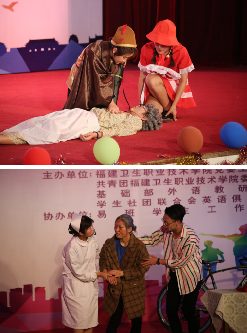 經(jīng)過初賽選拔,共有8支參賽隊(duì)伍脫穎而出晉級(jí)決賽。決賽中,各參賽隊(duì)伍選取古今中外醫(yī)學(xué)職場(chǎng)相關(guān)的場(chǎng)景為劇本,在外語教研室老師們悉心指導(dǎo)下,參賽隊(duì)伍充分投入到角色扮演和情感詮釋之中,用默契的配合和用心的表演為所有觀眾呈現(xiàn)了一場(chǎng)觸動(dòng)內(nèi)心的視聽盛宴,現(xiàn)場(chǎng)精彩紛呈。經(jīng)過激烈角逐,17中藥302班獲得一等獎(jiǎng);17護(hù)理313班、17護(hù)理317班獲得二等獎(jiǎng);17助產(chǎn)301班、17口腔301班、17助產(chǎn)303班獲得三等獎(jiǎng)。
