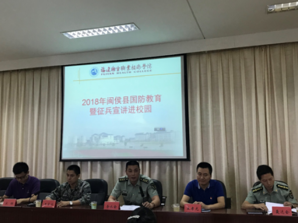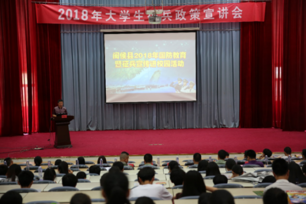 為深入貫徹落實全國及全省大學生征兵工作,提升新形勢下我院大學生應征入伍宣傳熱潮,6月11日至19日,學院邀請閩侯縣、荊溪鎮(zhèn)武裝部多次蒞臨我院進行2018年大學生國防動員暨征兵宣講進校園系列活動。閩侯縣委常委、人武部部長查水金、學院黨委副書記林建團和閩侯縣人武部、荊溪鎮(zhèn)武裝部和學院學工處負責人等一同參加了系列活動。
