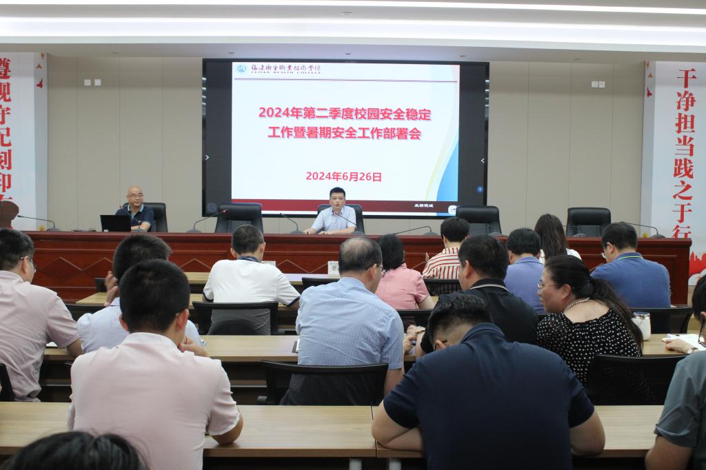 6月26日,學(xué)校第二季度安全穩(wěn)定工作暨暑期安全工作部署會在厚德樓六樓會議室召開,校領(lǐng)導(dǎo)、中層干部正職(含主持工作)、各學(xué)院分管學(xué)生工作的副書記、分管安全工作的副院長及全體輔導(dǎo)員參加會議,福州大學(xué)黃萍教授受邀作《高校校園安全管理》專題講座,副校長周雄主持會議。