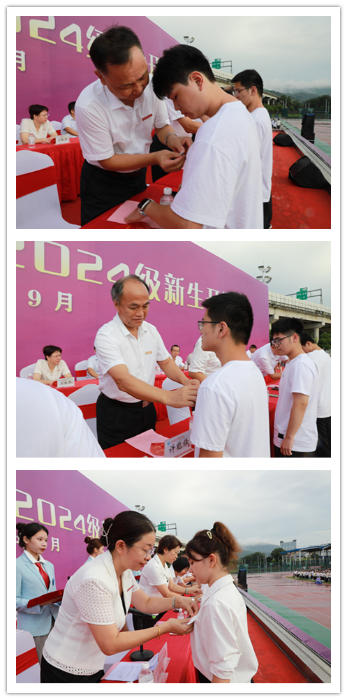 ?;帐敲棵麑W(xué)子最樸實(shí)的身份標(biāo)志,也將永久被珍藏。校領(lǐng)導(dǎo)為新生代表戴上學(xué)生徽章。這枚徽章,不僅代表著“閩衛(wèi)人”的身份,也寄托著閩衛(wèi)院“業(yè)精德誠(chéng)”的校訓(xùn)精神,更承載著閩衛(wèi)人投身祖國(guó)醫(yī)衛(wèi)健康事業(yè)的使命與榮光。