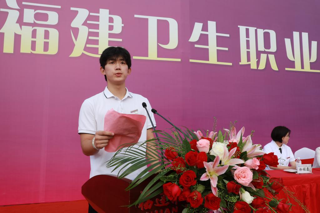 2024級(jí)健康大數(shù)據(jù)服務(wù)與管理專業(yè)的蔡開寧同學(xué)作為新生代表發(fā)言。他娓娓道來與閩衛(wèi)院的相遇,駐足校訓(xùn)石前的思悟,走進(jìn)校史館的震撼,感受師生們的溫暖,體會(huì)百十年學(xué)府的底蘊(yùn),認(rèn)定這里就是最好的安排,堅(jiān)信在這里他們將為自己的青春寫下無悔的大學(xué)篇章。
