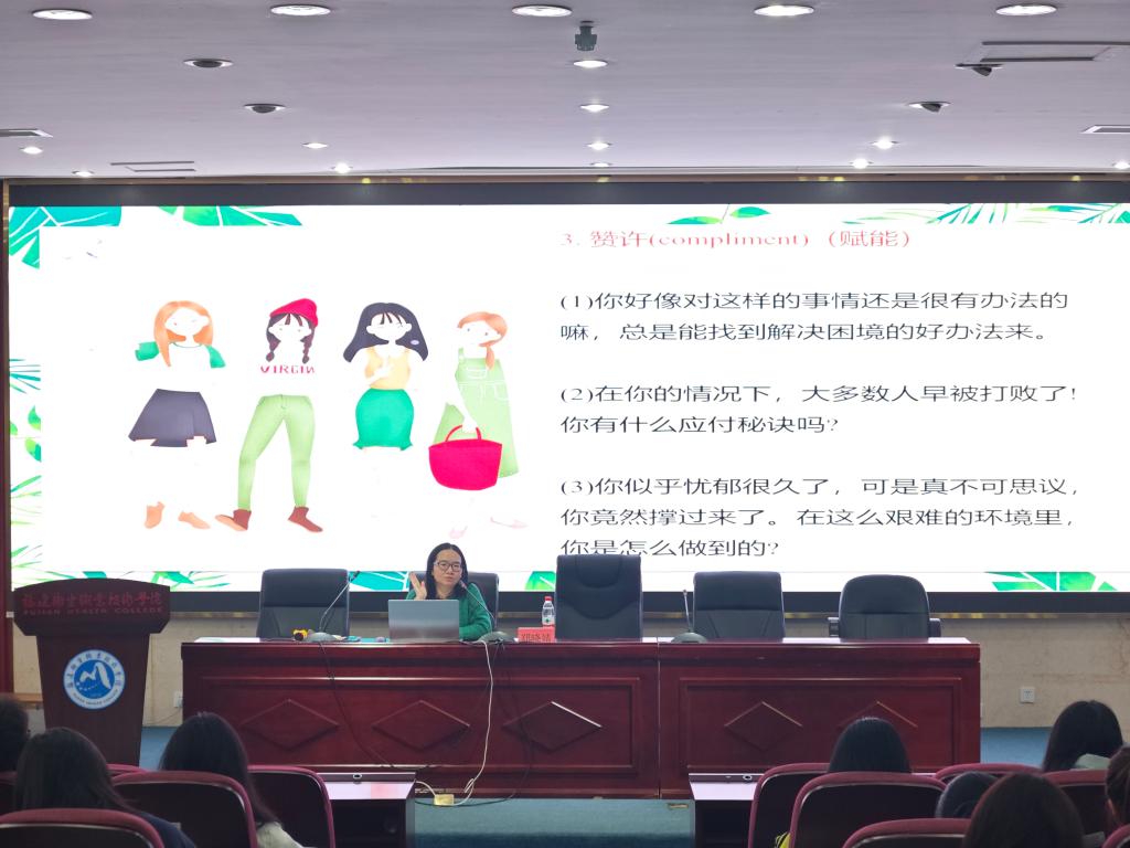 鄭曉婧老師為大家開展《朋輩心理輔導(dǎo)的實務(wù)操作》主題講座。她針對心理朋輩輔導(dǎo)工作的內(nèi)容、流程、態(tài)度及輔導(dǎo)策略,進行系統(tǒng)而深入的闡述。重點解析賦能與解決建構(gòu)技術(shù),詳細剖析實務(wù)操作的具體實施路徑,并通過現(xiàn)場互動來鞏固同學(xué)們的實務(wù)技能。