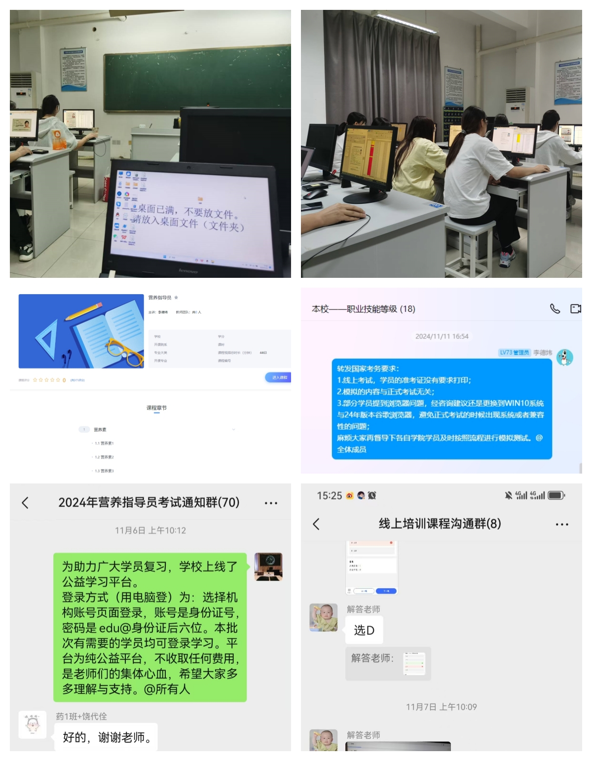 為確保服務(wù)到位,報名工作小組安排專人、設(shè)置專線為考生提供咨詢答疑服務(wù)。為確保所有考生順利參考,組織多名師生加班加點審核材料,同時,為了助力廣大考生備考復(fù)習(xí),依托超星平臺開展免費線上培訓(xùn),并成立問題答疑工作社群,為廣大考生提供高質(zhì)量服務(wù)。