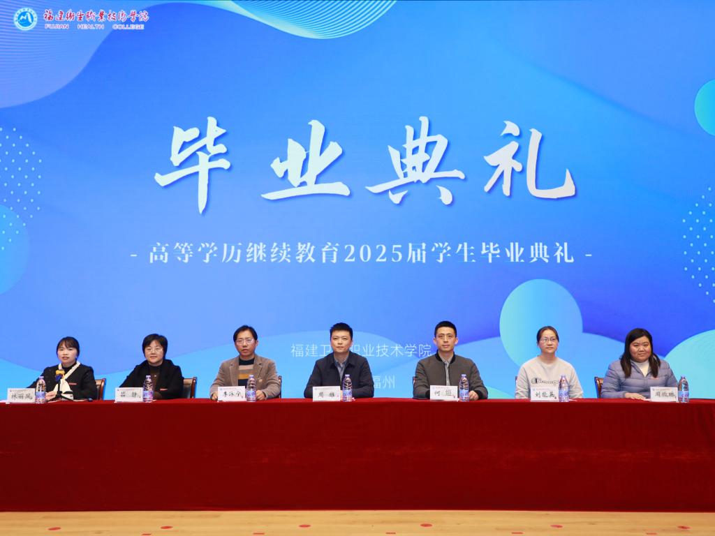 12月27日,我校隆重舉行高等學歷繼續(xù)教育2025屆學生畢業(yè)典禮。副校長周雄,繼續(xù)教育學院、護理學院、藥學院、醫(yī)學院、醫(yī)學技術(shù)與工程學院相關(guān)領(lǐng)導老師,畢業(yè)班班主任以及部分2025屆畢業(yè)生參加,1100多名外地畢業(yè)生收看線上直播。畢業(yè)典禮由繼續(xù)教育學院副院長林麗鳳主持。