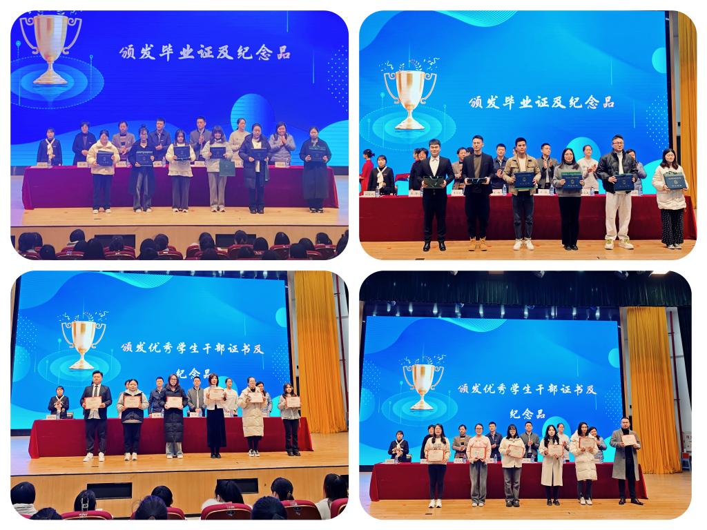 隨后,與會領(lǐng)導分別為2025屆各班畢業(yè)生代表頒發(fā)畢業(yè)證書和紀念品,為優(yōu)秀學生干部代表頒發(fā)榮譽證書和紀念品。