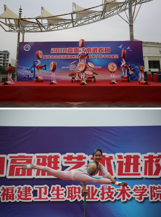 為進(jìn)一步推動(dòng)學(xué)院美育工作和校園文化建設(shè),近距離感受藝術(shù),引導(dǎo)學(xué)生欣賞和弘揚(yáng)優(yōu)秀民族文化。2018年4月26日,由福建省教育廳、福建省文化廳主辦的2018年高雅藝術(shù)進(jìn)校園——福建省雜技團(tuán)福建衛(wèi)生職業(yè)技術(shù)學(xué)院專場(chǎng)演出在我院音樂廣場(chǎng)盛大開演。