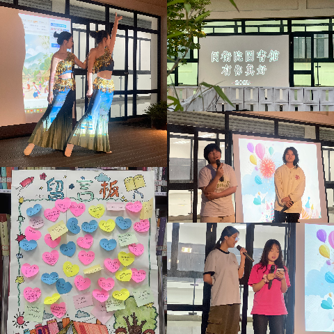 隨后,進(jìn)入才藝展示環(huán)節(jié),學(xué)生館員們通過歌舞、游戲盡情展現(xiàn)數(shù)年來在學(xué)校學(xué)習(xí)工作中收獲的成長,云閱臺上滿是歡聲笑語。在留言墻上,大家寫下心里話,有對未來的期待,也有對圖書館的留念。一張大合影,定格住了這一刻的快樂。