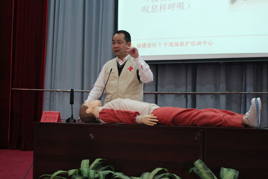 省紅十字會(huì)救護(hù)培訓(xùn)中心鄭明華老師首先通過(guò)案例分析了急救的重要性,使同學(xué)們認(rèn)識(shí)到志愿者工作的重大意義。鄭老師結(jié)合現(xiàn)場(chǎng)演示為志愿者們生動(dòng)講解了心肺復(fù)蘇的具體操作流程,同時(shí)指出錯(cuò)誤的動(dòng)作所帶來(lái)的嚴(yán)重后果,使志愿者們受益匪淺。鄭老師生動(dòng)有趣地講解獲得了志愿者們的認(rèn)同,大家認(rèn)真聽(tīng)講,積極與老師互動(dòng),培訓(xùn)大會(huì)效果顯著。