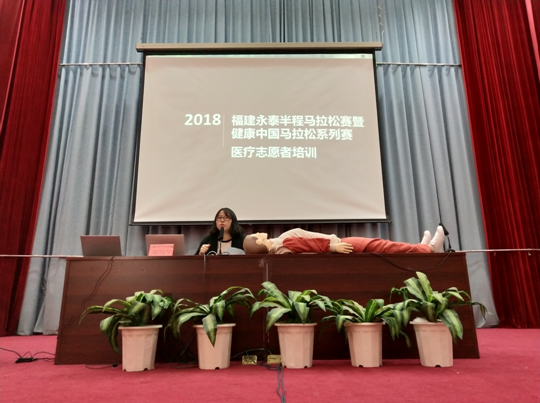 3月11日下午,2018福建永泰半程馬拉松賽暨健康中國(guó)馬拉松系列賽醫(yī)療志愿者培訓(xùn)大會(huì)在福建衛(wèi)生職業(yè)技術(shù)學(xué)院學(xué)術(shù)廳舉行,由學(xué)院團(tuán)委組織招募的255名志愿者參加,他們分別來(lái)自學(xué)生紅十字會(huì)、護(hù)理系和臨床醫(yī)學(xué)系。組委會(huì)黃宗毅老師和省紅十字急救培訓(xùn)中心鄭明華老師為志愿者進(jìn)行了強(qiáng)化培訓(xùn)。志愿者們將在沿途賽道及主會(huì)場(chǎng),發(fā)揮自己專(zhuān)業(yè)所長(zhǎng)協(xié)助組委會(huì)和醫(yī)護(hù)人員為參賽者提供醫(yī)療救助服務(wù)。