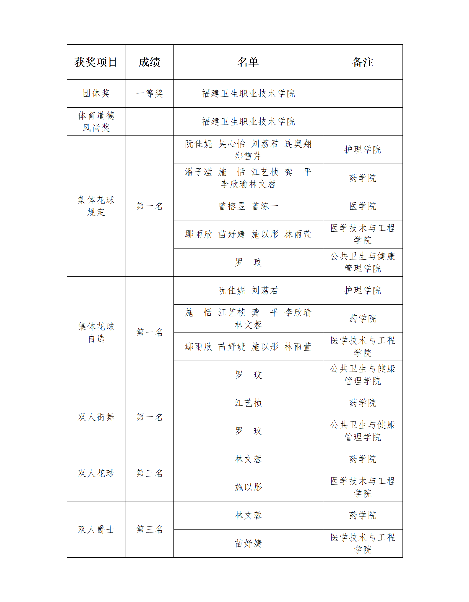 6月14-16日,福建省大學(xué)生啦啦操錦標(biāo)賽在安溪縣梧桐體育館開賽,來自全省21所高校的精英隊伍齊聚一堂,展開角逐。我校操舞運動隊18名運動員在領(lǐng)隊阮秋容以及教練鄧素華、劉麗萍、胡麗芳、余照鋮的帶領(lǐng)下,在多個賽項中脫穎而出,最終取得單項3金2銅和團(tuán)體一等獎并榮獲體育道德風(fēng)尚獎,實現(xiàn)比賽成績與精神文明雙豐收。
