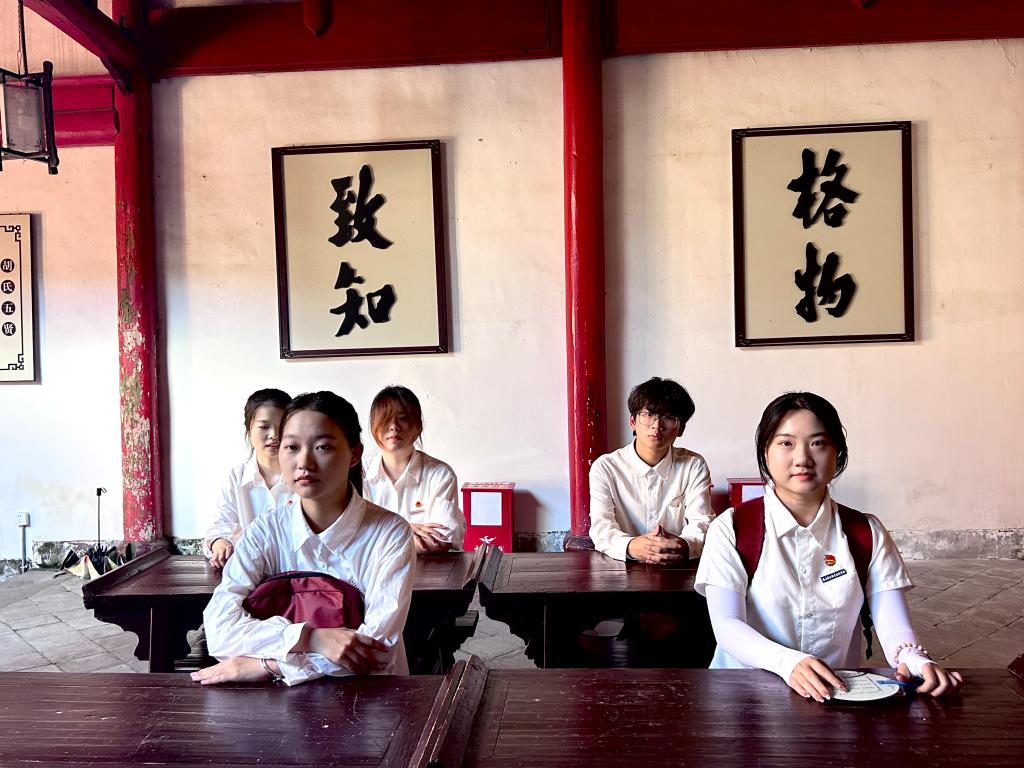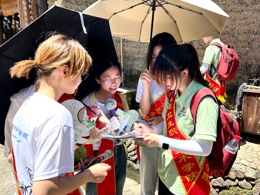 在崇陽溪岸邊,“榮藥”實踐隊開啟朱熹文化探尋之旅。隊員們走進朱子講學(xué)舊址,深入學(xué)習(xí)理學(xué)經(jīng)典,感悟“格物致知”的深刻內(nèi)涵;走訪古宅遺跡,聆聽歷史故事,追尋朱子文化脈絡(luò)。誠邀書法老師揮毫寫下此次“三下鄉(xiāng)”朱子文化主題,讓傳統(tǒng)文化在實踐中綻放新光彩。