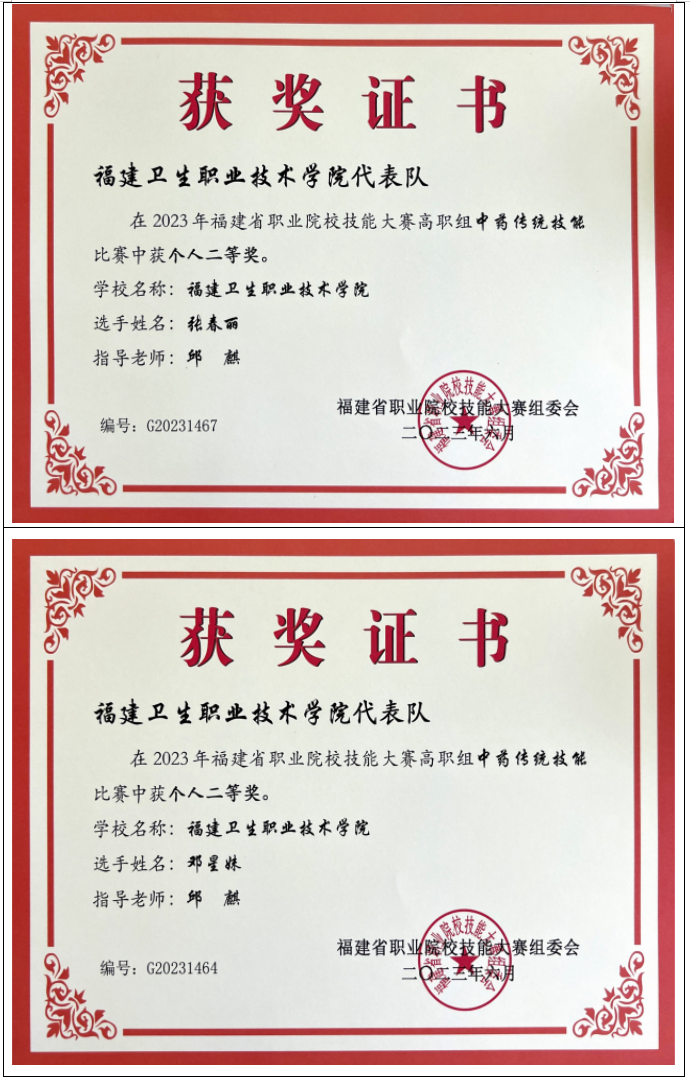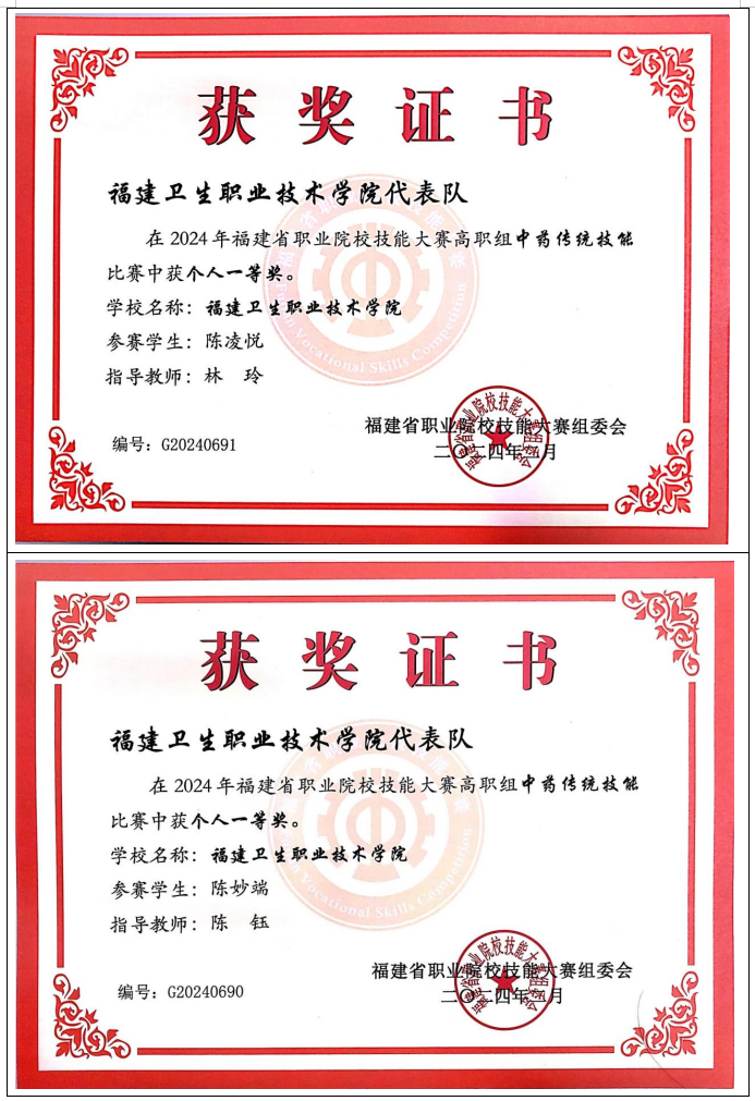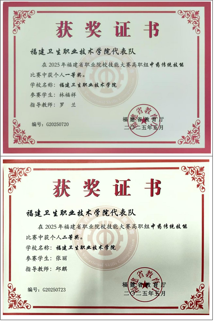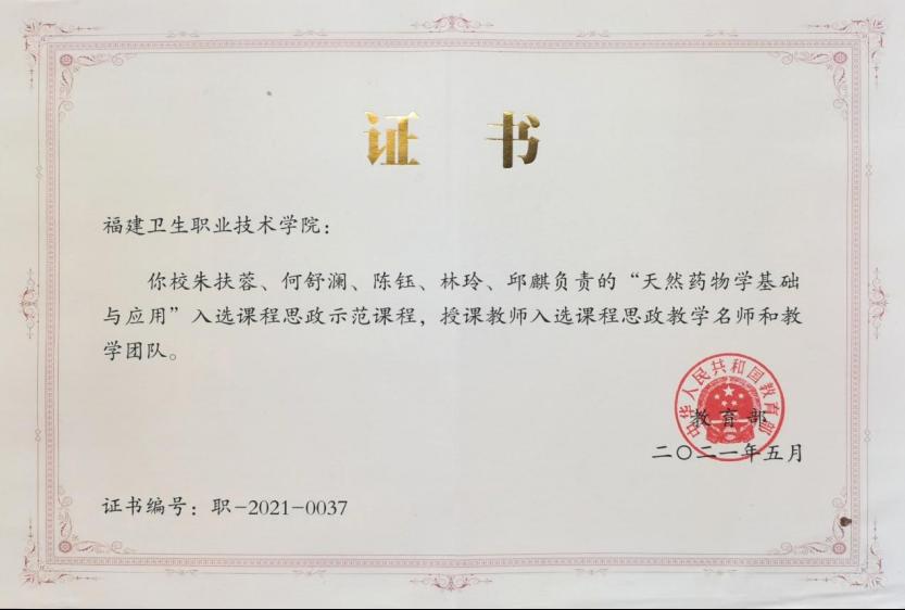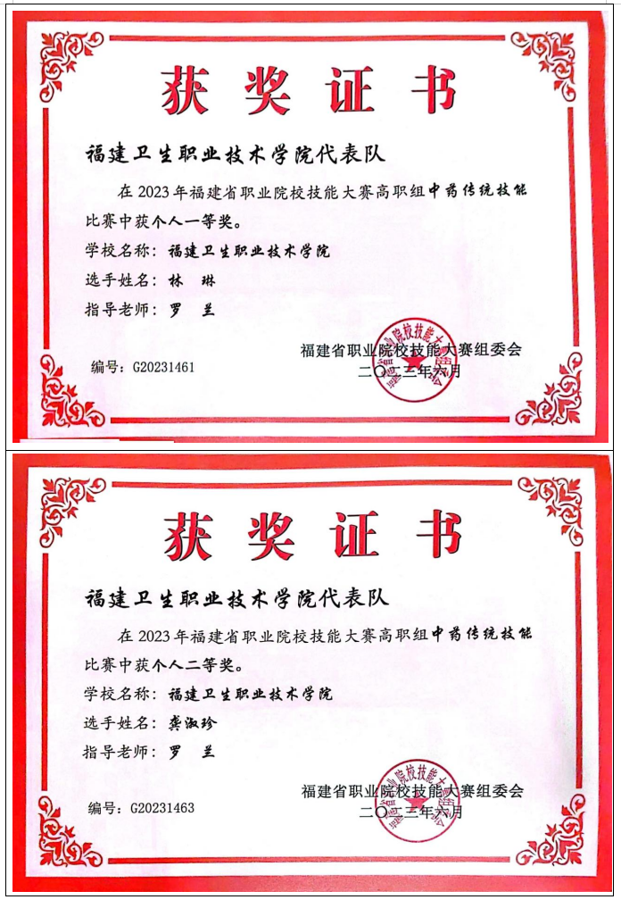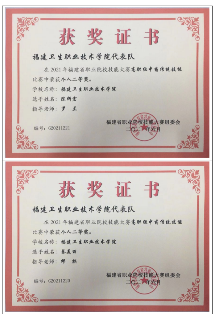 《中藥學、藥學專業(yè)校企協(xié)同培養(yǎng)技術技能型人才培養(yǎng)模式的探索與實踐》,獲2017年福建省職業(yè)教育教學成果一等獎  |