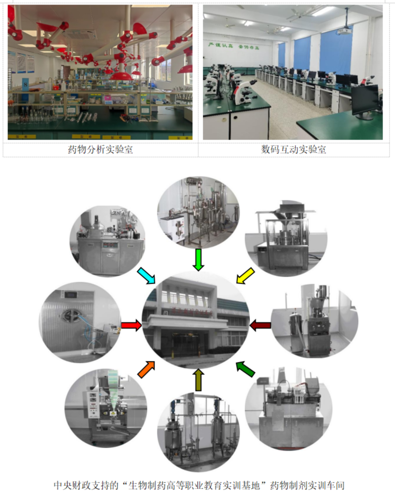 本專業(yè)“生物制藥高等職業(yè)教育實訓基地”是中央財政支持的高等職業(yè)教育實訓基地,設備齊全,技術先進,此外,還擁有生物制藥綜合實驗室、精密儀器中心和細胞與基因工程實驗室等實訓場所,為藥品生產專業(yè)開設基礎化學、藥品生產、藥物制劑、藥品檢驗等相關課程的化學定性定量分析、微生物發(fā)酵生產、分離純化、固體液體制劑生產、藥品質量檢測等實訓項目提供場所。