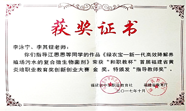 “和職教杯”首屆福建省黃炎培職業(yè)教育獎創(chuàng)新創(chuàng)業(yè)大賽高職組金獎