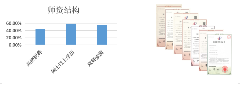 現(xiàn)有專任教師14人,其中高級(jí)職稱6人;碩士及以上學(xué)歷14人,其中博士2人。近年來(lái)教師獲授權(quán)發(fā)明專利十余項(xiàng),與企業(yè)聯(lián)合申報(bào)科研項(xiàng)目5項(xiàng),承接企事業(yè)橫向課題12項(xiàng);申報(bào)各類科研課題立項(xiàng)36項(xiàng),廳級(jí)以上項(xiàng)目26項(xiàng)。