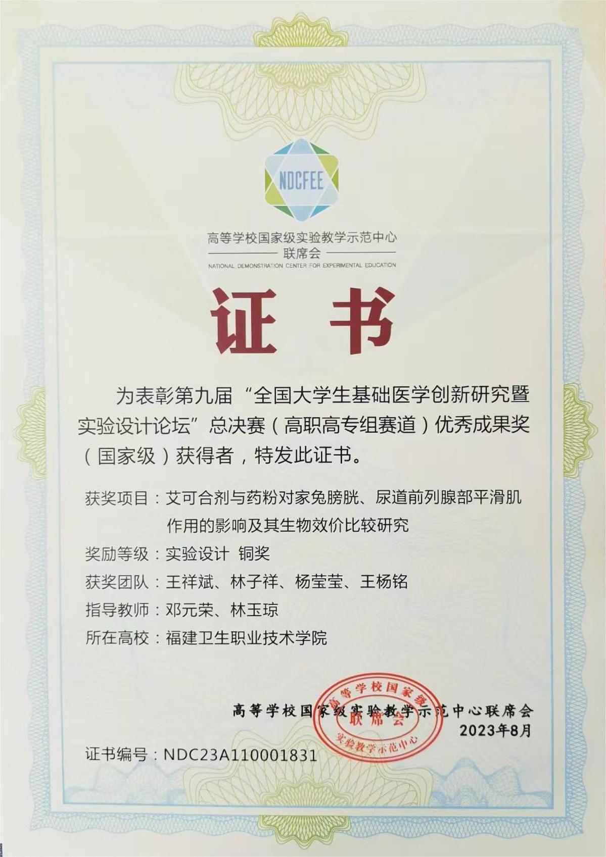 近年來,學(xué)生榮獲全國大學(xué)生醫(yī)學(xué)創(chuàng)新比賽省級(jí)一等獎(jiǎng)3項(xiàng)、二等獎(jiǎng)3項(xiàng)、國家級(jí)銀獎(jiǎng)2項(xiàng)、銅獎(jiǎng)2項(xiàng),職業(yè)技能競賽省級(jí)一等獎(jiǎng)2項(xiàng)、二等獎(jiǎng)3項(xiàng)、三等獎(jiǎng)2項(xiàng),在全國職業(yè)院校臨床醫(yī)學(xué)專業(yè)技能大賽和福建省大學(xué)生軍事技能比武中多次榮獲獎(jiǎng)項(xiàng)。