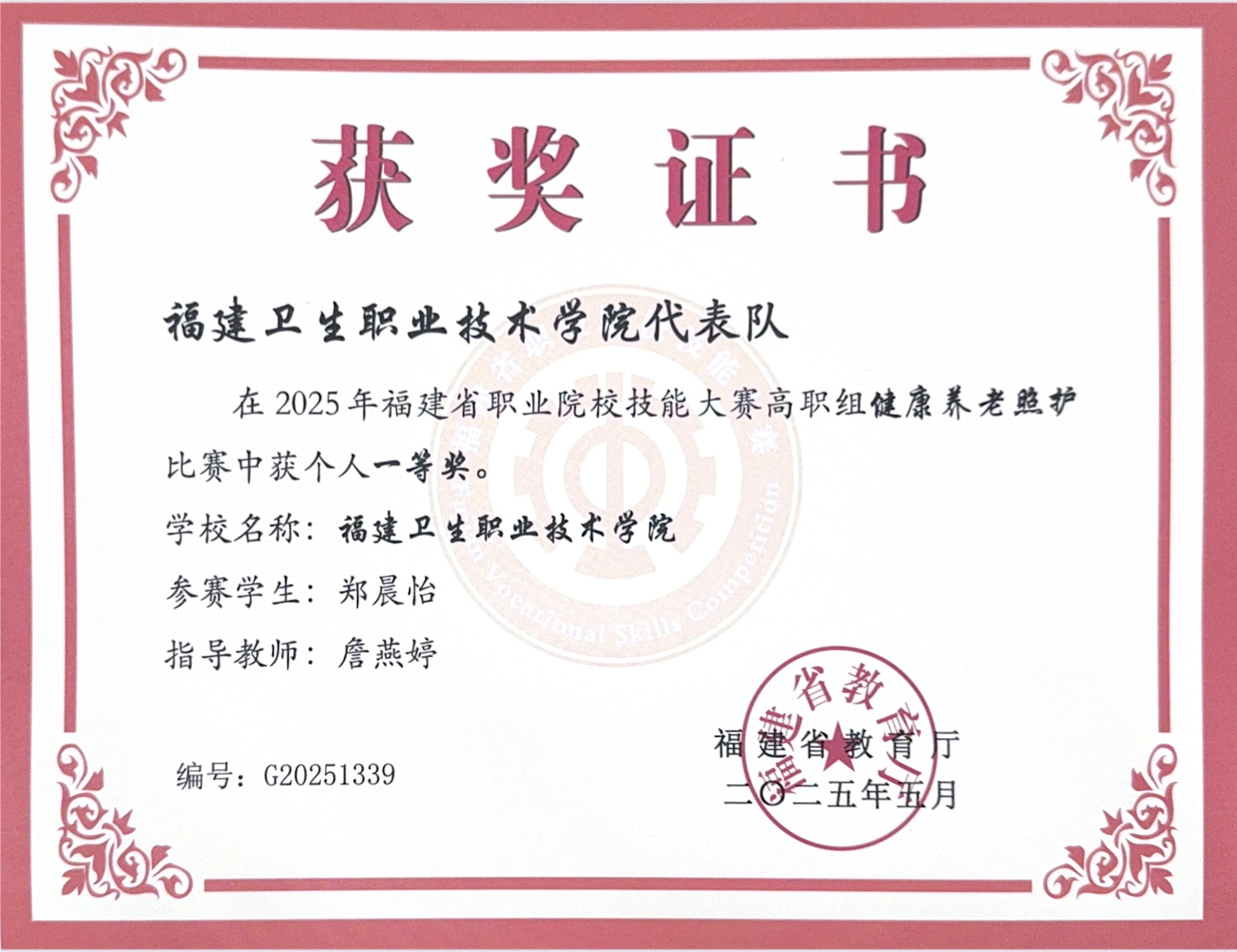 獲福建省職業(yè)院校技能大賽健康與社會(huì)照護(hù)賽項(xiàng),二等獎(jiǎng)2項(xiàng)  |