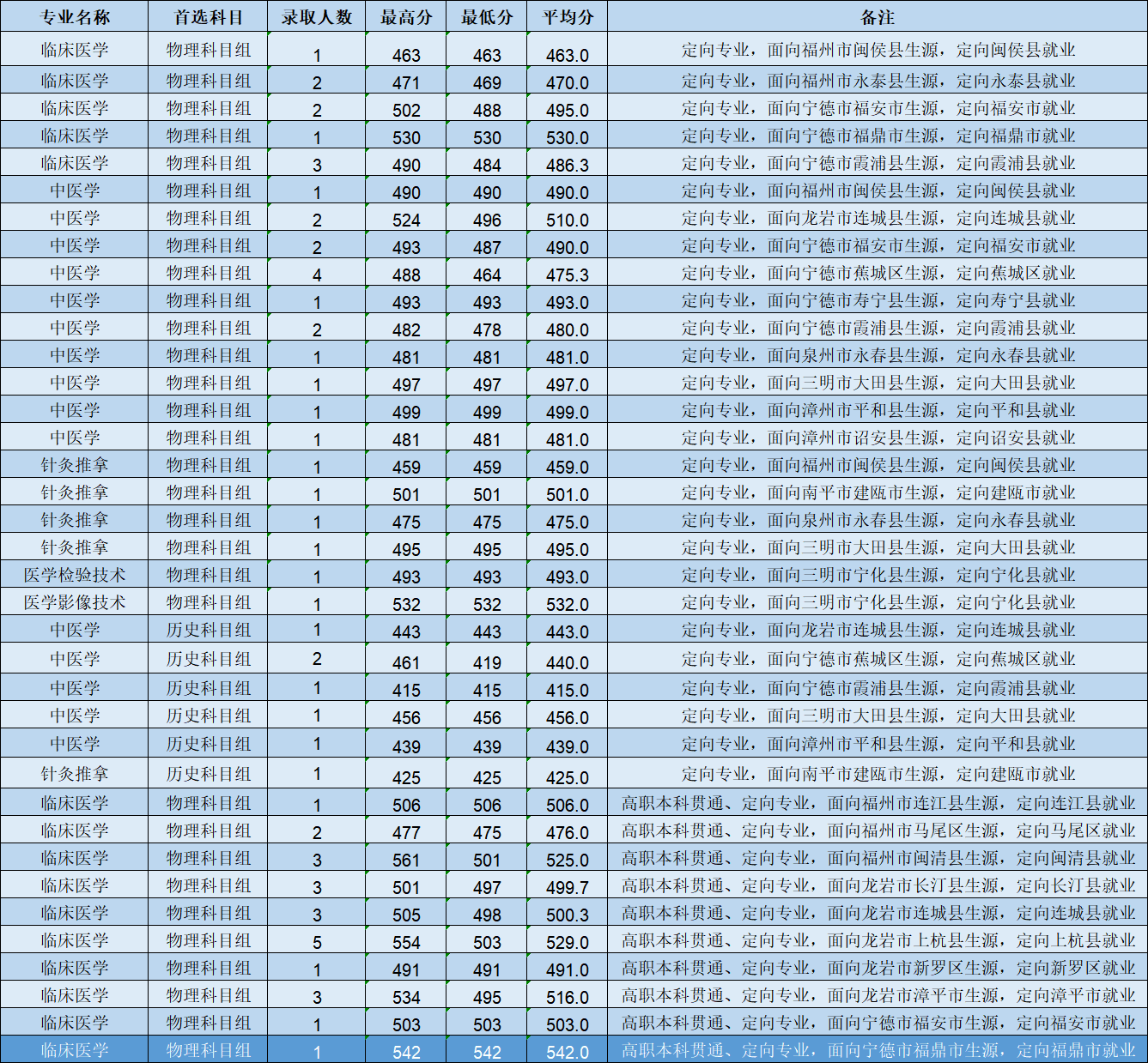 高職高專、高職本科貫通:面向戶籍在定向縣(市、區(qū))或平潭綜合實驗區(qū)并在該縣(市、區(qū))或平潭綜合實驗區(qū)報名普通高考的應往屆普通高中畢業(yè)生(不含中職畢業(yè)生、同等學力人員)。錄取工作安排在普通高校招生高職(專科)批次進行,高職本科貫通和高職(???層次分別單列院校專業(yè)代碼。