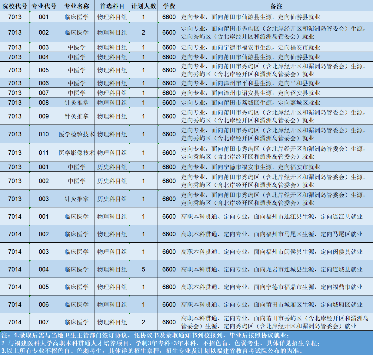 2025年福建省普通高考定向?qū)I(yè)招生計劃表