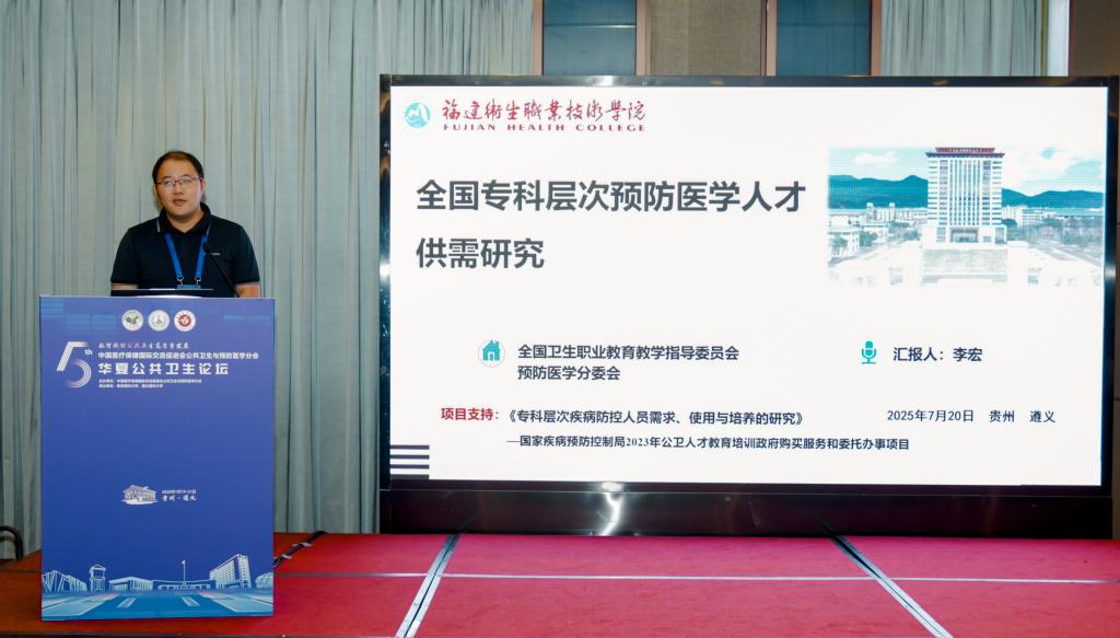 本次論壇參會人員涵蓋中國醫(yī)促會公共衛(wèi)生與預防醫(yī)學分會委員,高校、科研院所教學科研人員,各級疾控中心、醫(yī)療機構及公共衛(wèi)生基地工作者,以及相關專業(yè)研究生。論壇以"數智賦能公共衛(wèi)生高質量發(fā)展"為主題,圍繞公共衛(wèi)生體系建設、重大疾病防控、健康中國戰(zhàn)略實施等議題展開深度研討。我校李宏教授在大會作《全國專科層次預防醫(yī)學人才供需研究》主題報告,全面匯報2023年國家疾控局委托項目成果,重點分析基層醫(yī)療衛(wèi)生機構需求與高職高專預防專業(yè)人才培養(yǎng)現(xiàn)狀,獲與會專家充分肯定。