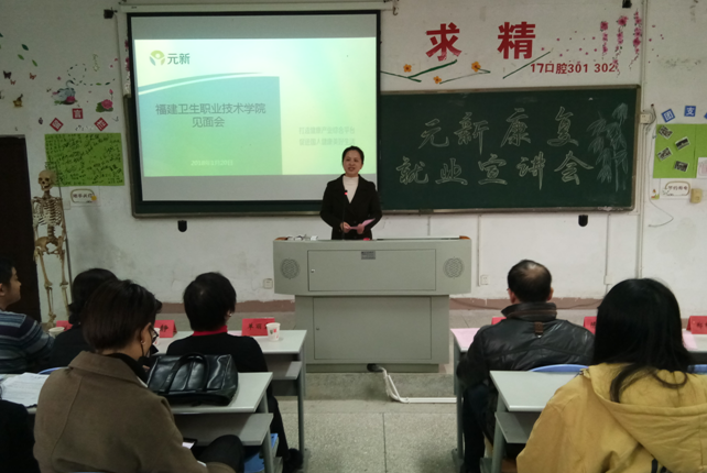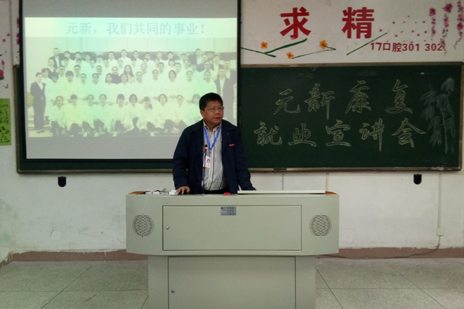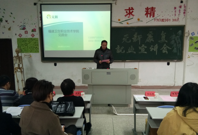 為助應(yīng)屆畢業(yè)生獲取更多就業(yè)機(jī)會,拓寬就業(yè)渠道,探尋創(chuàng)新校企合作教學(xué)“1+2”模式,臨床醫(yī)學(xué)系攜手校企合作單位元新健康管理有限公司,于1月20日上午在系第一階梯教室舉行就業(yè)推介指導(dǎo)會暨企業(yè)見面會。蘇友新院長、臨床醫(yī)學(xué)系郭禮堅(jiān)主任、原系黨總支洪聿榮書記、黨總支陳俊穎副書記、康復(fù)專業(yè)指導(dǎo)老師、元新康復(fù)企業(yè)高層代表及15級、16級、17級康復(fù)針推專業(yè)同學(xué)參與此次宣講會。此次見面會共分兩個(gè)部分: