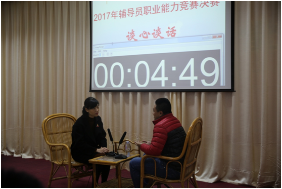 決賽分為主題演講和談心談話兩個環(huán)節(jié)。主題演講圍繞十九大報告中的熱門話題“堅定文化自信,做好價值引領(lǐng)”和“在新時代新矛盾新征程中指引大學生找到人生成長新坐標”展開;談心談話針對學生校園學習生活遇到的問題,如擔任學生干部挫敗感、宿舍關(guān)系不和諧、校園生活不便利等,考察輔導員對學生的教育引導能力。選手們準備充分、沉穩(wěn)從容、應對自如,出色的表現(xiàn)展現(xiàn)了我院輔導員風采。